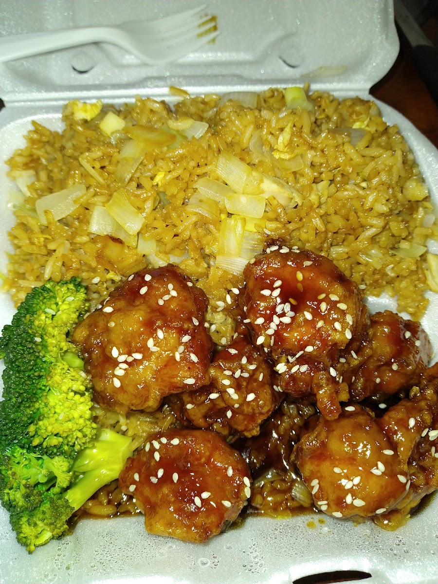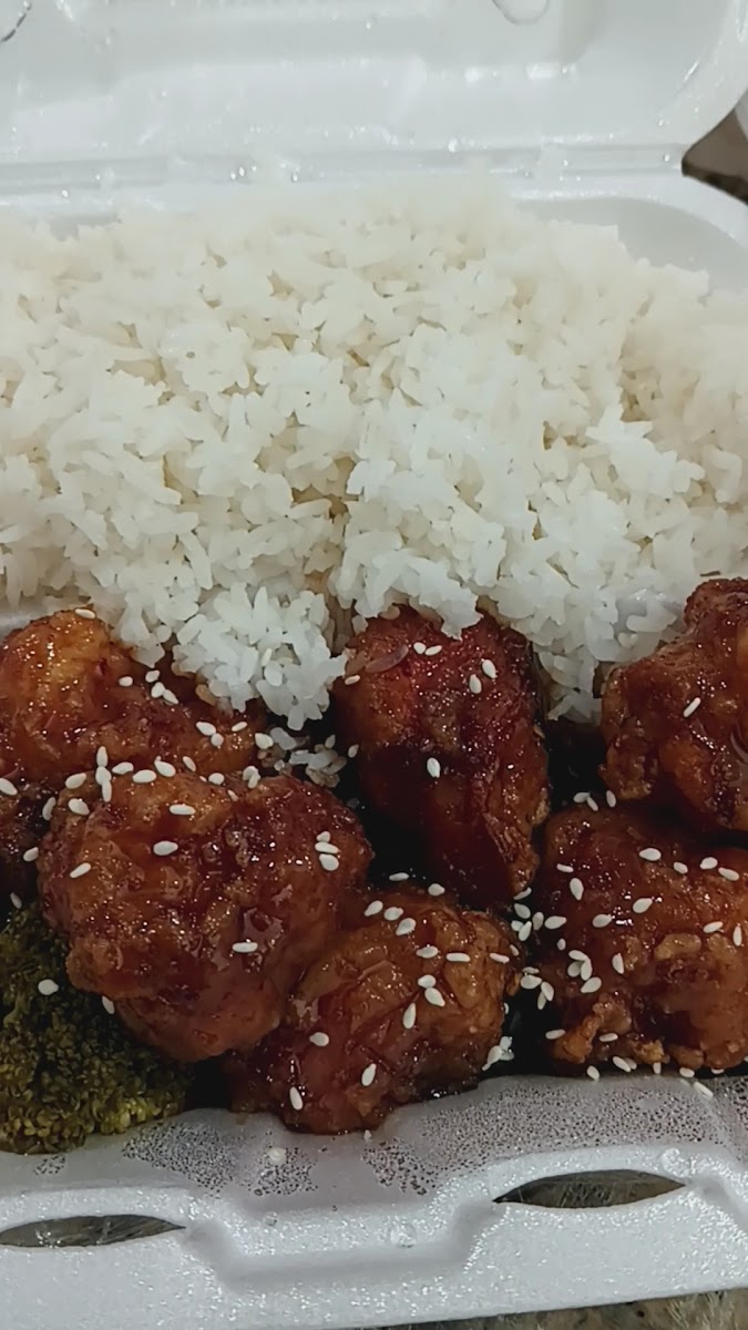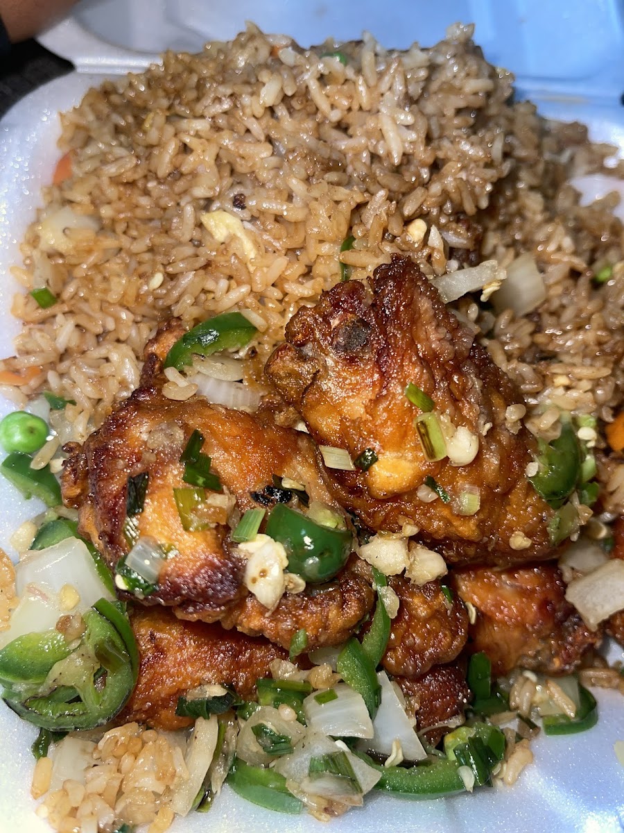Food was yummmy to my tom tom so good !!!! Regular fried rice with the jalapeño chicken was done right fried crispy so tasty! The rice alone was good ! Customer service was ok .