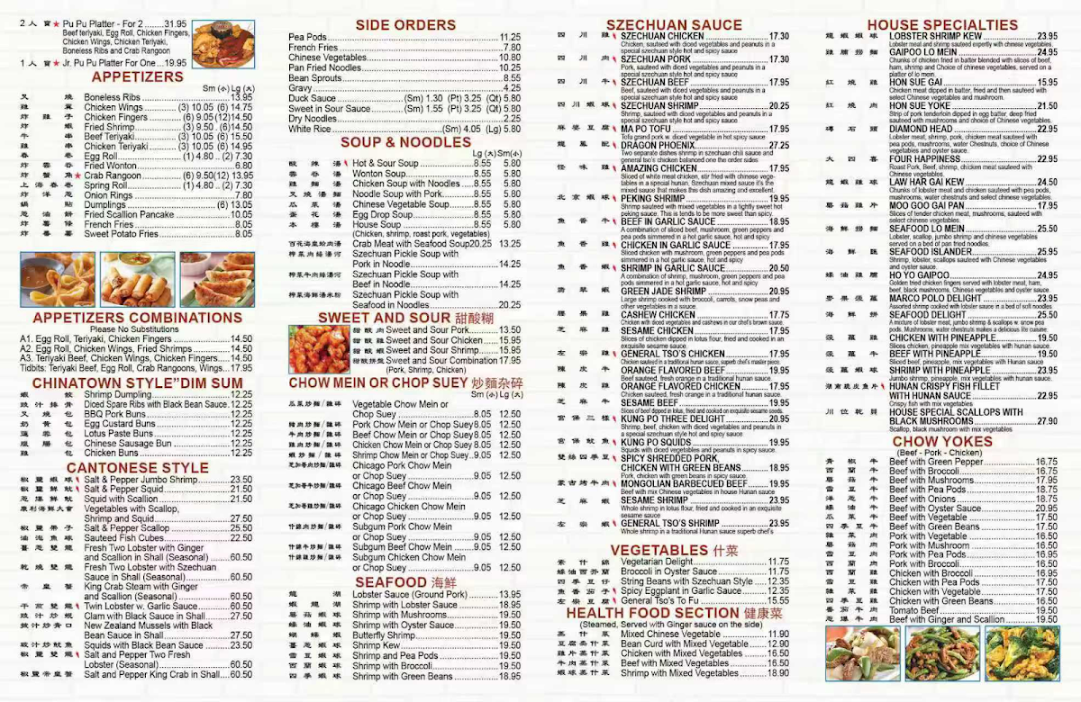 Lobster meat, shrimp, pork, chicken meat sauteed with pea pods mushrooms, water chestnuts, choice Chinese vegetables and oyster sauce