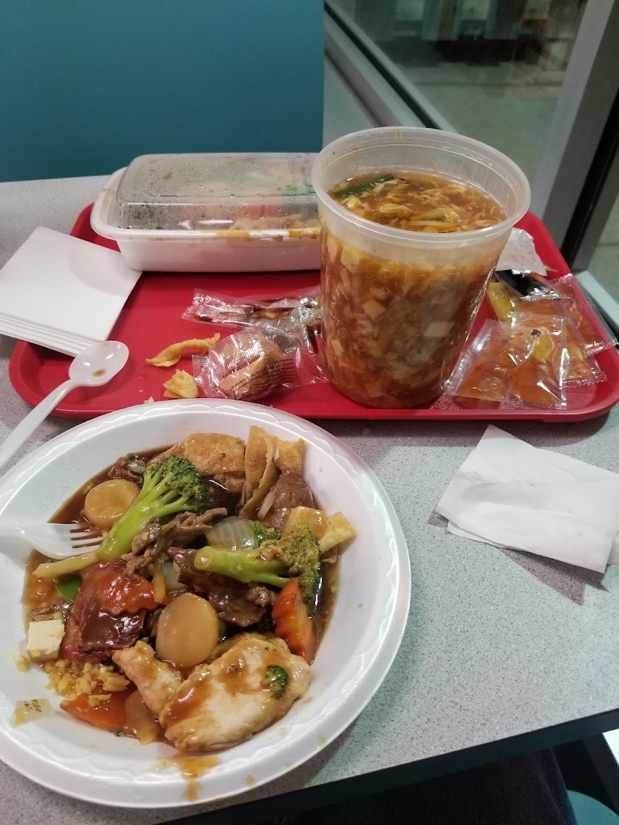 Wonton soup and pork eggrolls. Eggrolls were good, crispy thick with good strands of cabbage, duck sauce. Soup was good, big wontons and a good amount too. Broth was solid with a bunch of garnish. Only complaint would be the hot chili, it wasn't bad tasting at all, but it doesn't mix well with the broth, kinda just settled down to the bottom.
