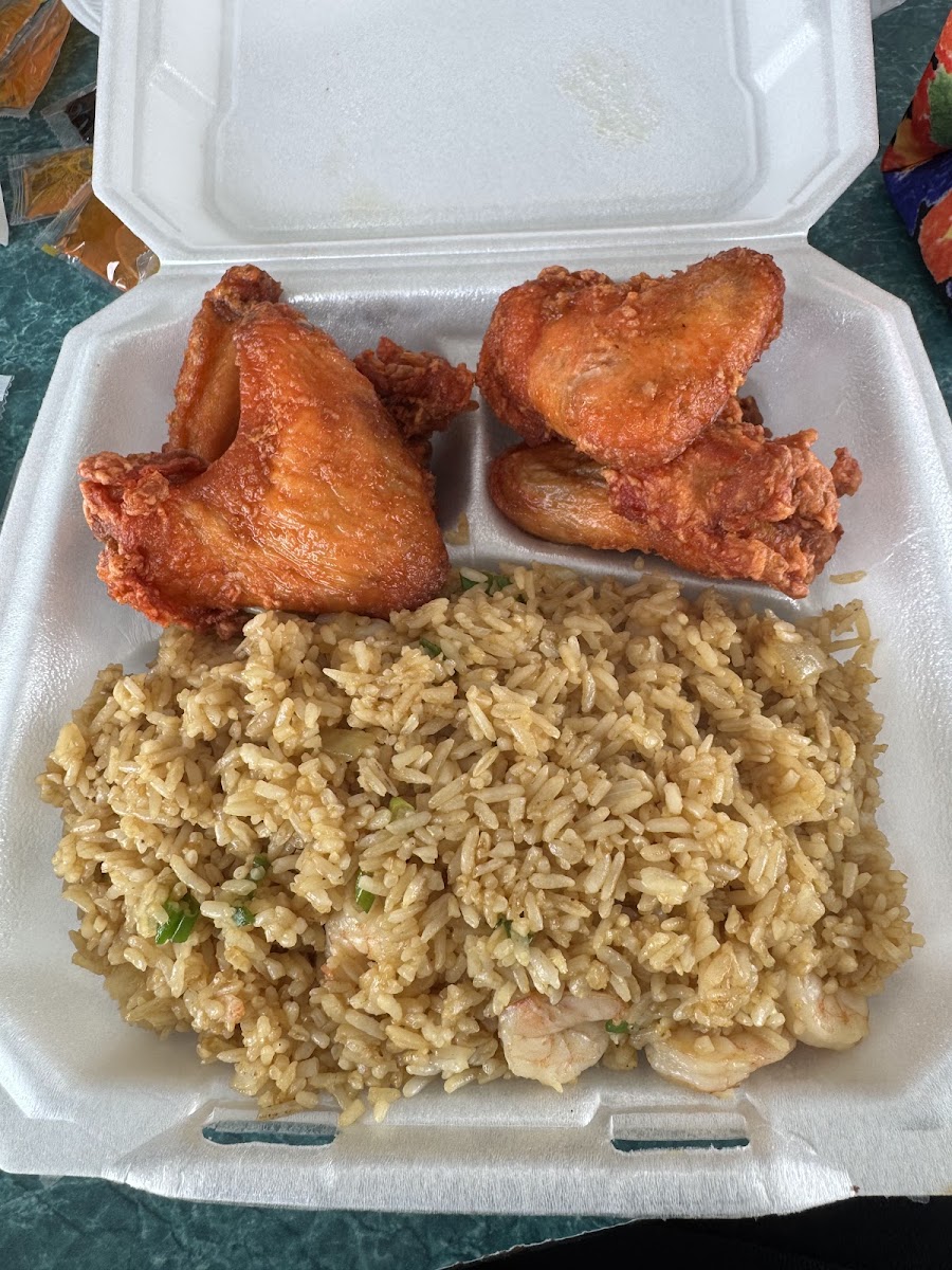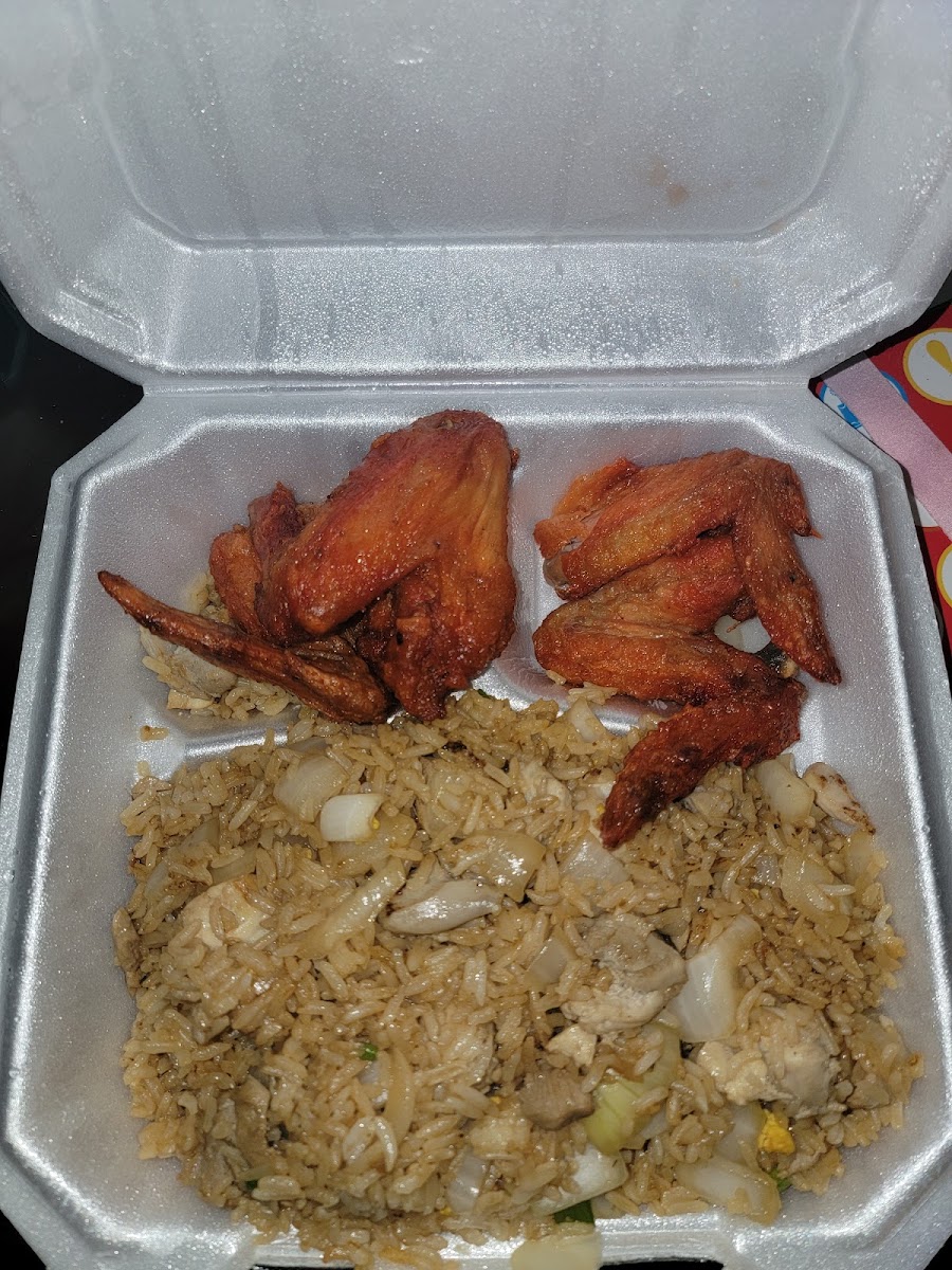 The red wings are always on point here! Stopped by to grab some because it's been a good little minute. Tried the Boneless Chicken and plain fried rice with eggs, onions also. It was good and handled my craving!!