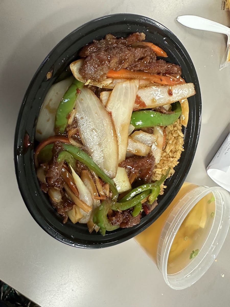 Very good lunch special. Sezuaun beef with wanton soup.