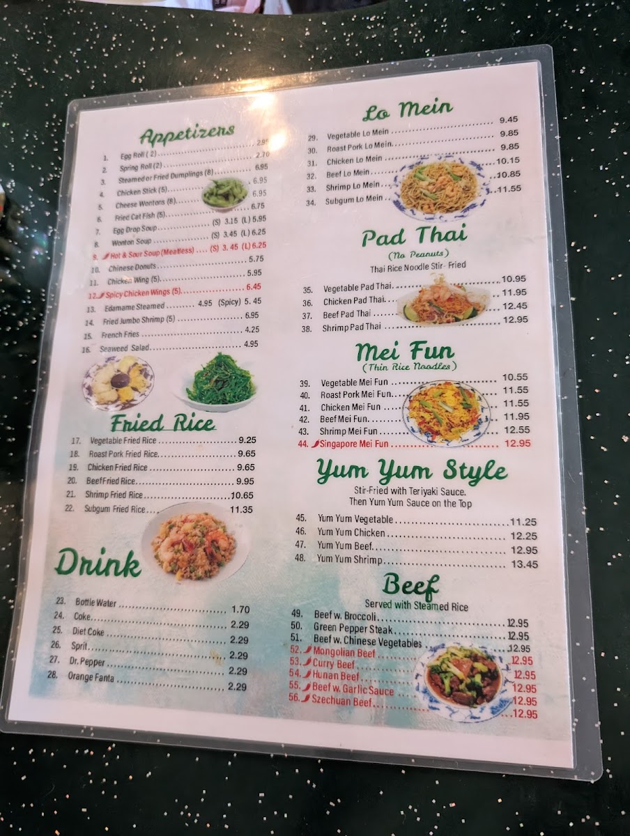 Hot and spicy. Jumbo shrimp, chicken, beef with broccoli, green peppers and snow peas in spicy szechuan sauce.
