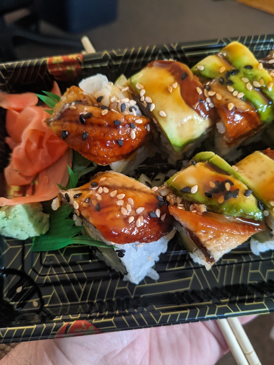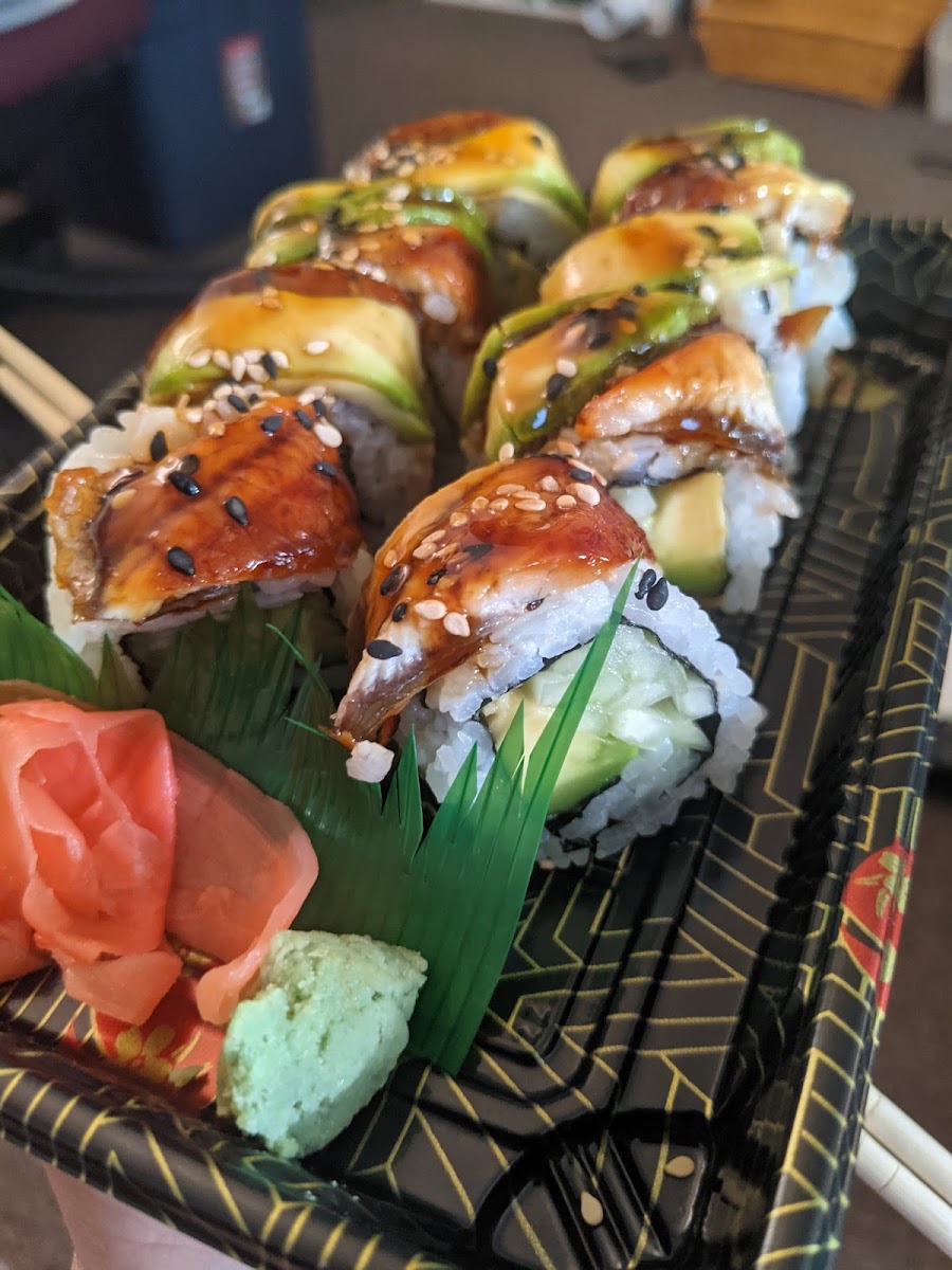 Stopped for lunch after a gem show. Awesome chicken curry! Great seaweed salad and sushi. Large portions. Very friendly. Will come again if in the area! Wonderful assortment of items.