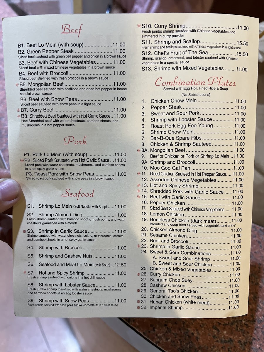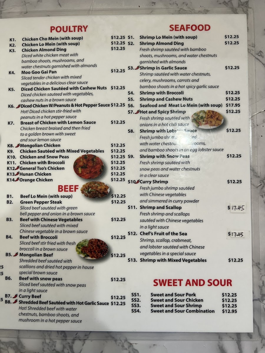 An authentic Hunan specialty,sliced beef with scallops and crab meat sauteed with water chestnuts,bamboo shoots,mushrooms and mix Chinese vegetables
