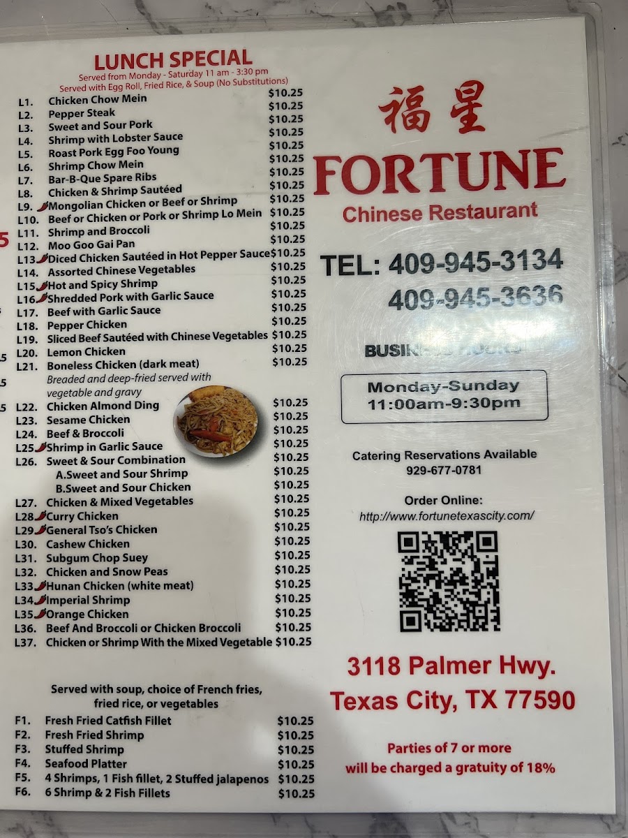 Served with soup, choice of French fries,fried rice, or vegetables