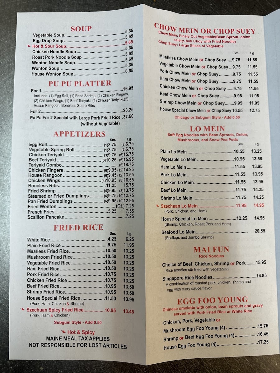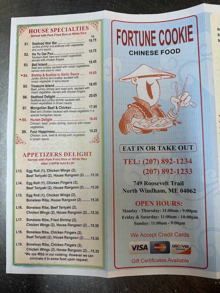 Fortune Cookie Menu