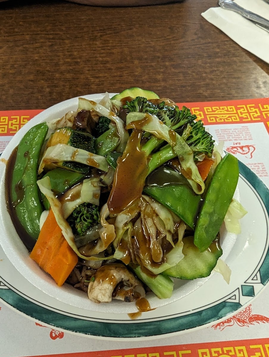 Stopped here for lunch. The sauteed veggies was flavorful. The house fried noodles were tasty. The service was excellent.