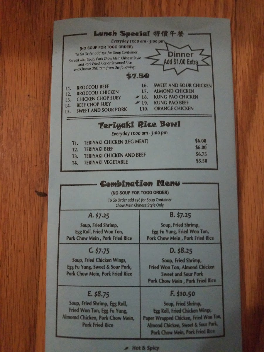 Combination Menu
