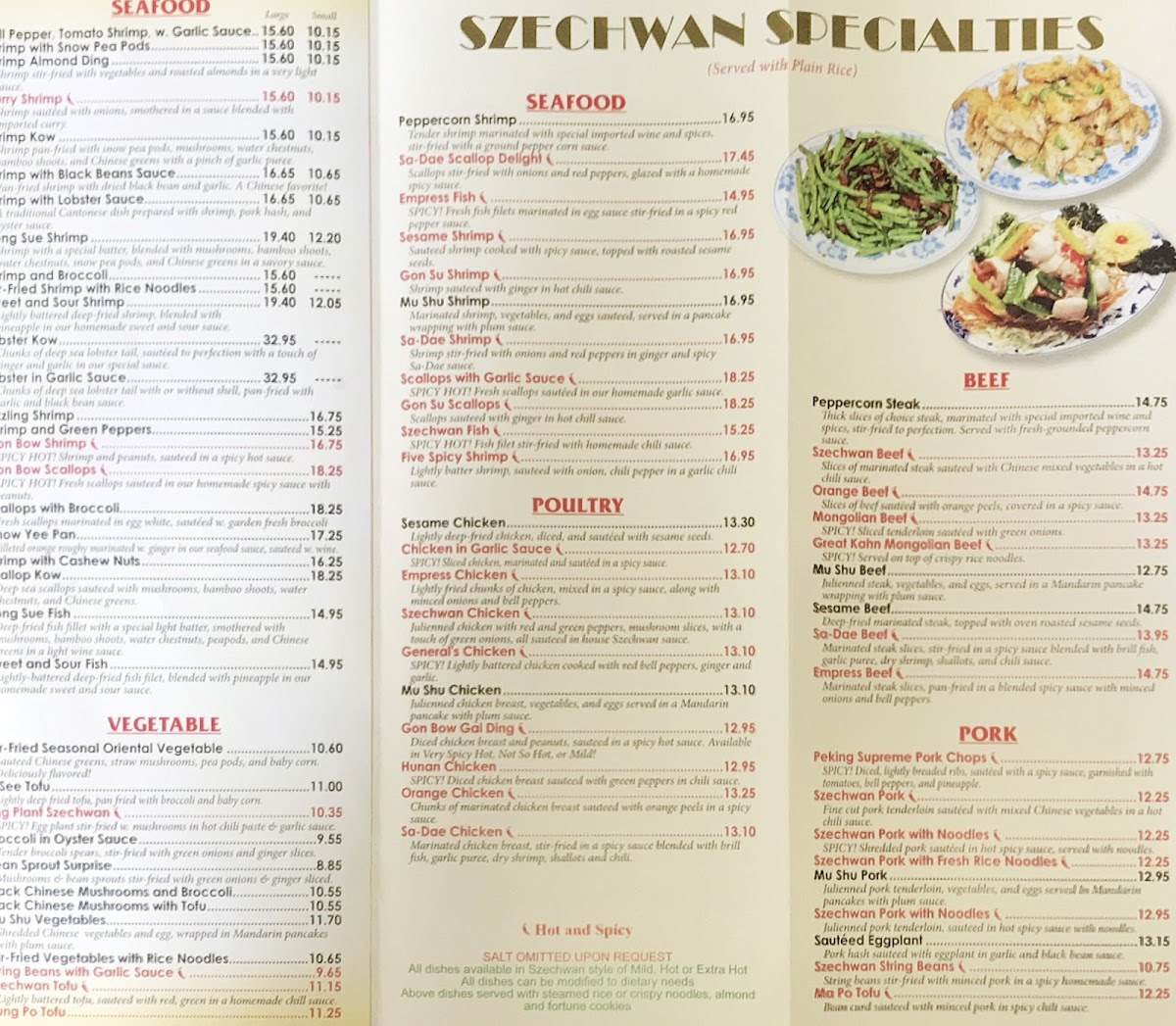 spicy hot! sliced steak sautéed with green onion, peanuts, and red pepper.