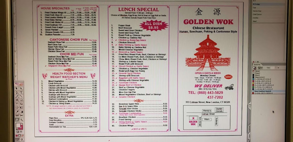 Golden Wok is a Chinese restaurant located at 353 Colman St, New London, CT 06320, United States. The menu includes a variety of dishes totaling multiple choices, with featured offerings like Singapore Chow Mei Fun and Chicken Sesame and Fries Rice. It has been reviewed 235 times, making it a notable spot for Chinese cuisine in New London.