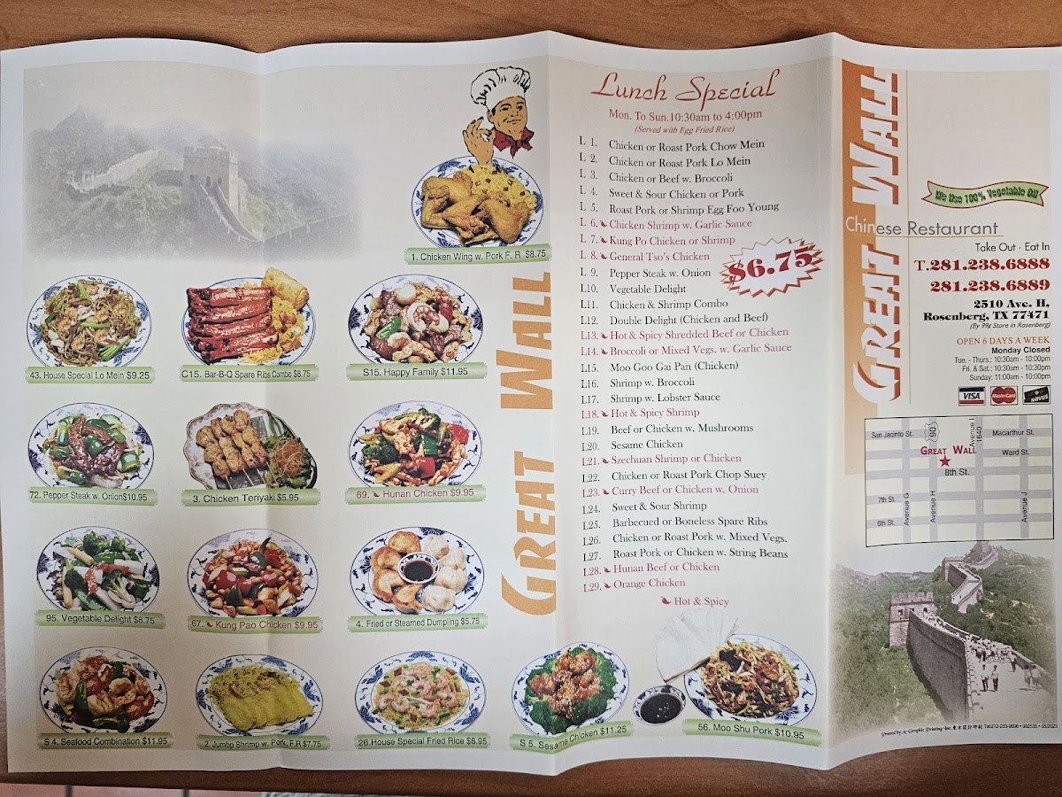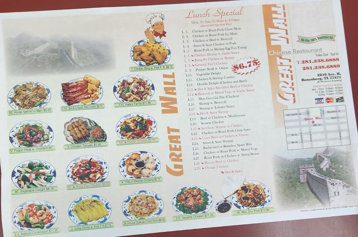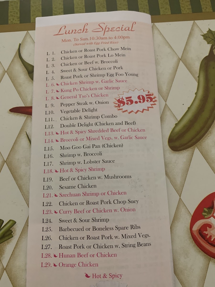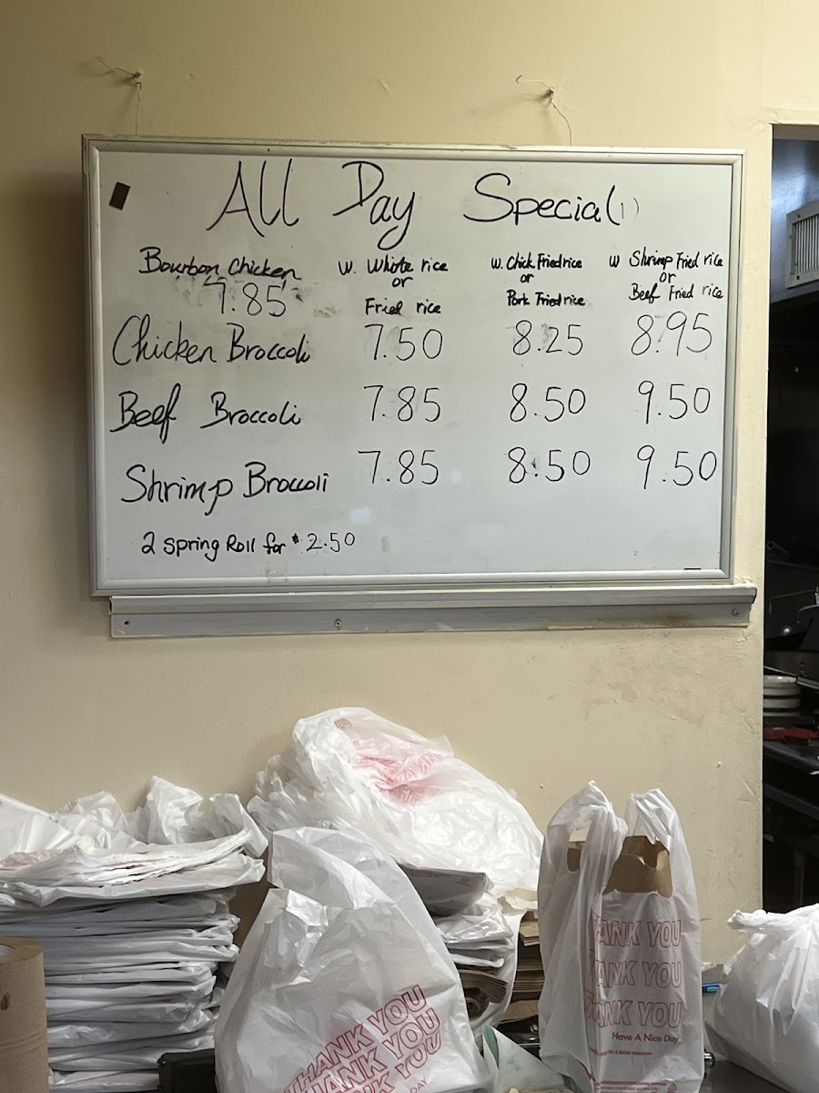 Rice Choice: Plain, Plain Fried Rice (+ $1), Pork Fried Rice (+ $1.25), Shrimp Fried Rice (+ $2), Vegetable Fried Rice (+ $1).