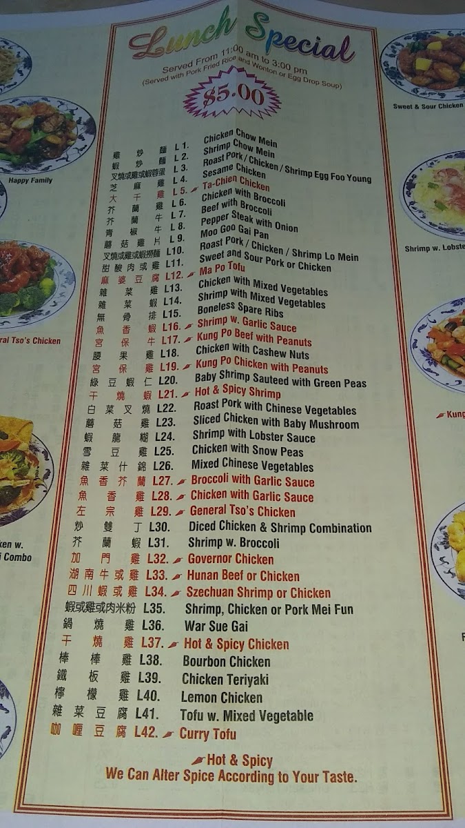 Sweet & sour sauce, choice of chicken or pork, served with pork fried rice and eggroll.