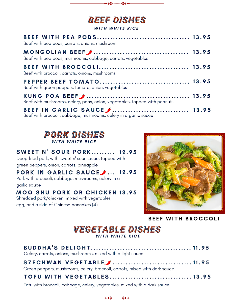 6. Beef & Chinese Vegetables, Egg Roll & Fried Rice