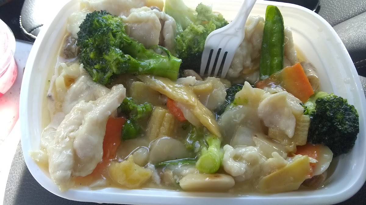 And to think that I had Panda Express last night. I've had so much more vegetables in this and mushrooms and that yummy corn the chicken is melting in your mouth. Seriously. The most tender steamed chicken I've ever had. not like the cold serving from Panda Express for some reason everything is cold there when I get it. This is so hot! I got steamed vegetables and they still poured this thick delicious broth on top of the whole thing. Where do you want to spend your next $11 you decide.