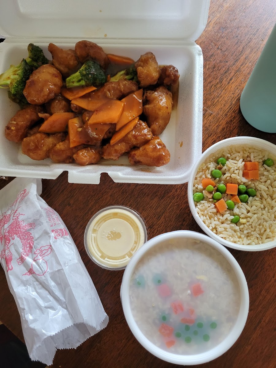 Stopped by to grab some carry out for dinner. The drive through loops around the building in a big sweeping turn, it's convient. Menu is easily legible and I was helped immediately when I pulled up to it. I ordered general Tsos chicken, fried rice side and yum yum sauce. Total was $12. Food was good, general Tsos chicken could have been crisper though, was a touch soggy. Fried rice was delicious and their yum yum sauce is fantastic and sweet. Like to stop here from time to time and try something different.