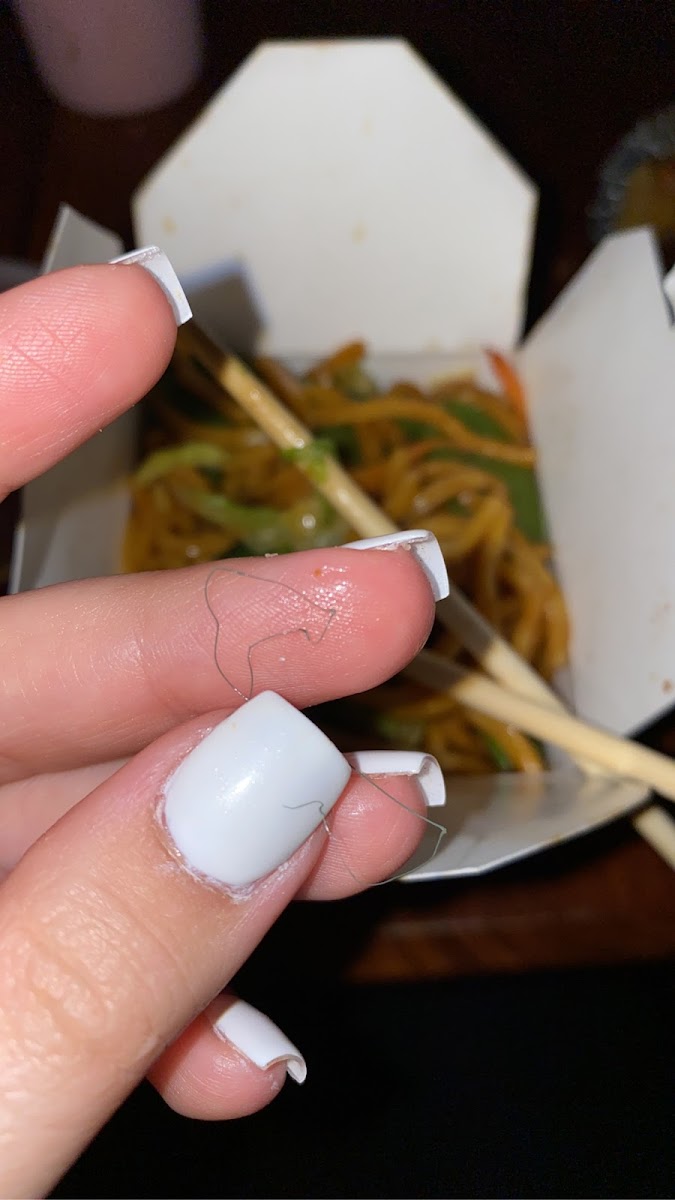 Overall, pretty good food! Was ready when they said it would be and still steaming hot when I got home 20 minutes later. I only wish the egg roll was bigger! It was only about 2” long but so good! The crab rangoons were a little too sweet for me but still good, and you could see the crab chunks in it. Sesame chicken was great! My only complaint is one bite into my veggie lo mein there was a blue plastic hairlike piece of something and the noodles didn’t have much flavor.
