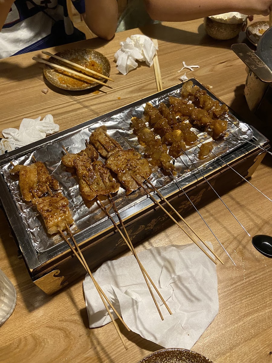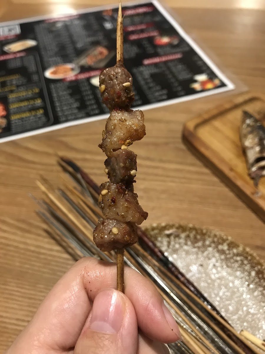 The atmosphere and location are great, but the food format was a letdown. The skewers are pre-cooked in the kitchen rather than grilled at the table. If you are looking for that authentic, interactive grilling experience you find at other skewer places, you won't find it here. Just so-so. the taste is okay.