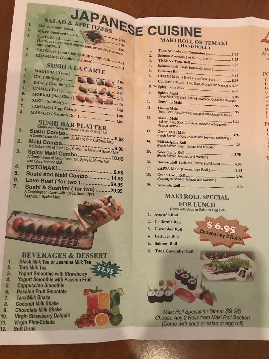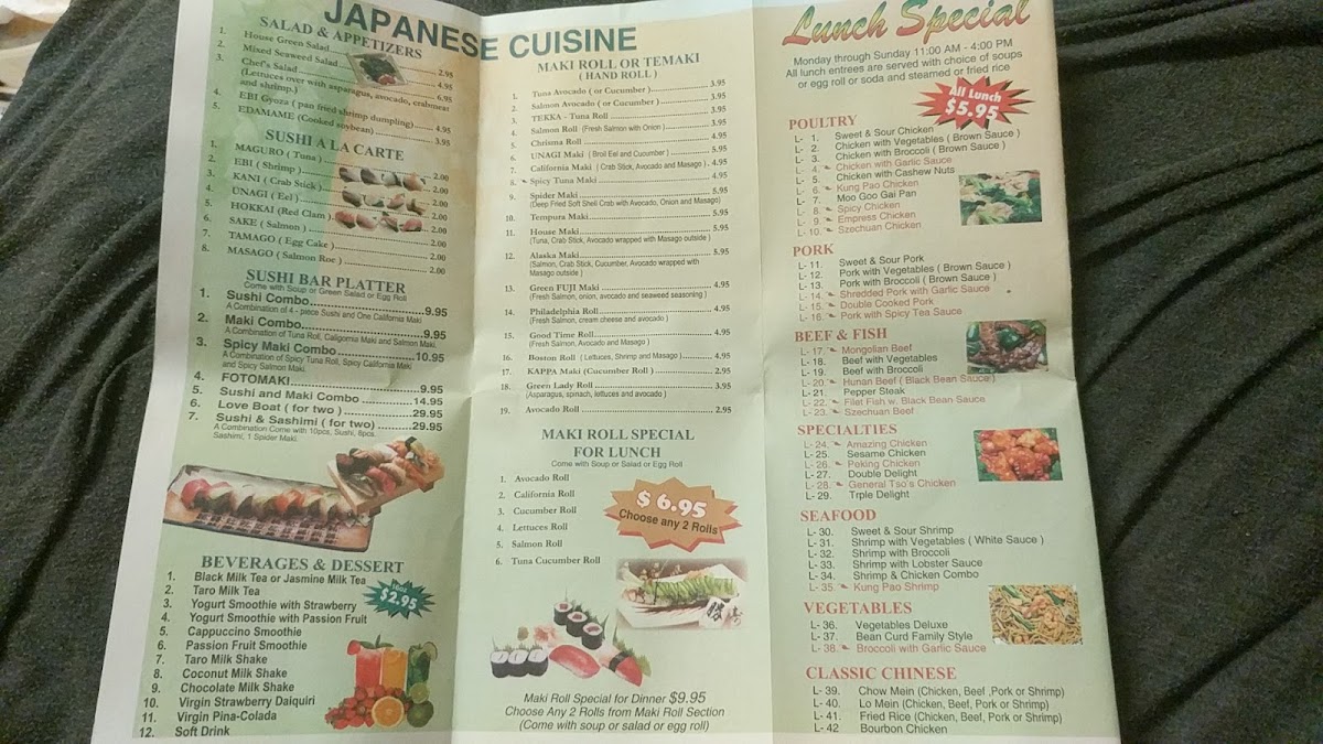 A combination come with 10 pieces sushi, 8 pieces sashimi, 1 spider maki.