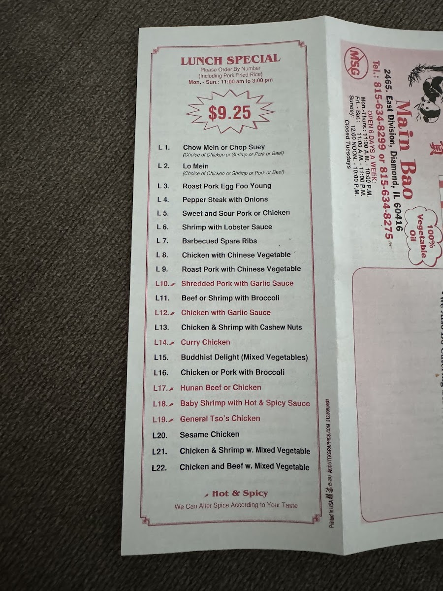 Very good food perfect every time. authentic. Egg rolls are my favorite