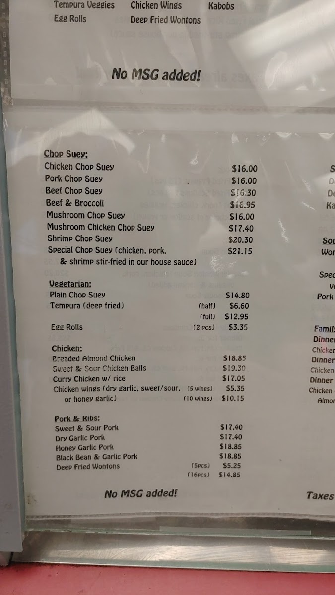 We offer 2 versions of this Chinese staple: Choose between a steamed noodle which is thinner and lighter or an egg noodle that's thicker and more filling. Both are cooked with cabbage, bean sprouts, onions and shredded carrots. The Steamed Noodle is shown in the photo.