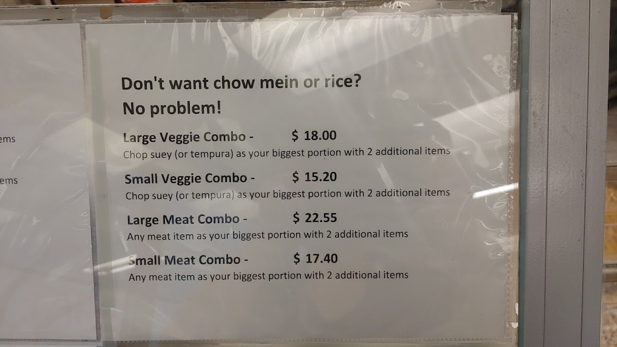 Chow mein or rice as your main choice with one other choice.