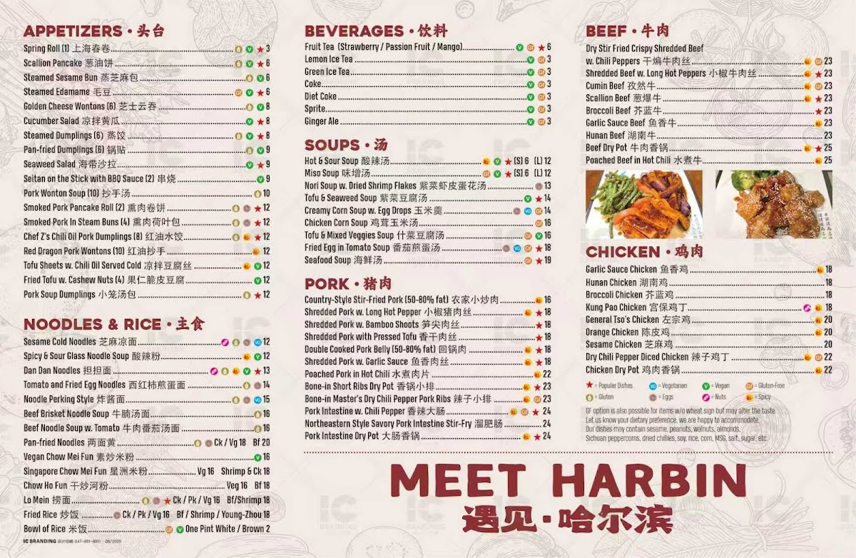 ???????? Wheat noodles, Chili Oil, Sesame Peanut Sauce Contain: Gluten, Nuts, Spicy sprouts, veggie ham