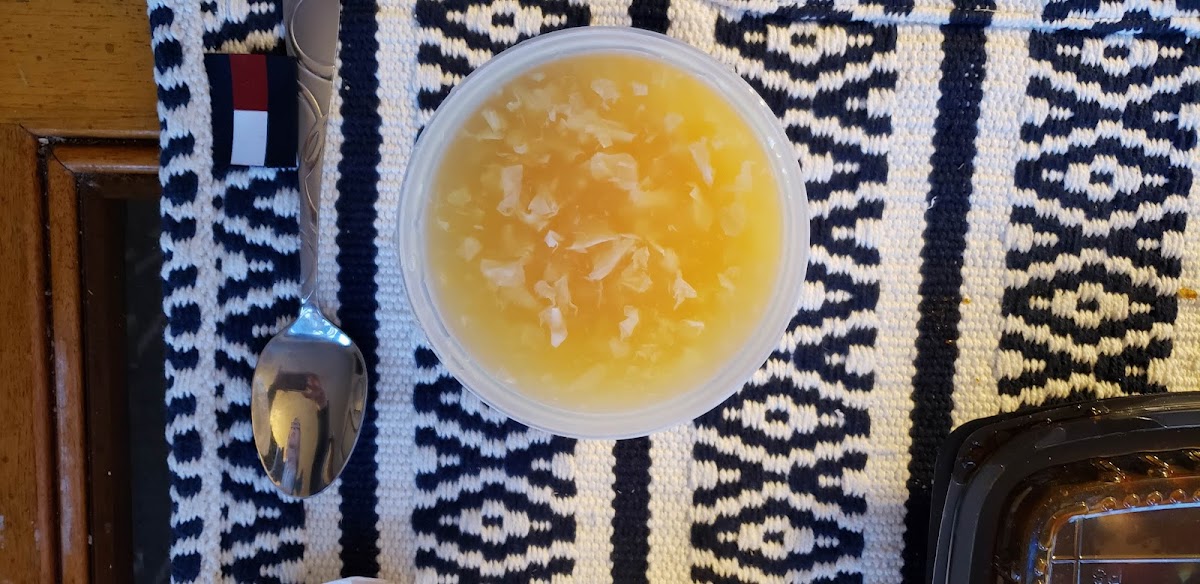 Delicious egg drop soup. Large shrimpin the Shrimp with lobster sauce