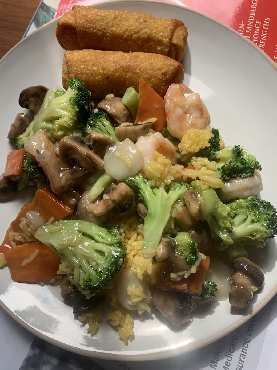I always get the Shrimp, rice, and Broccoli, it is soooo saucey and flavorful!! An occasional egg roll is a-must as well. Almost EVERYTIME you order the nice lady working says ‘15 minute’ and I AM super glad because ‘15 minute’ is all I can stand to wait for the large proportion of food coming my way shortly after I’d placed my order!!! Great food and Service!