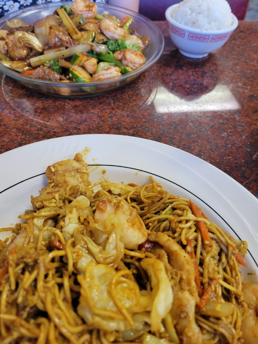 This place was pretty decent! I've been here before, I think a while, though, probably years. It was, eh, not the same. If you recognize me at all, you know my posts are usually pretty long. I ordered the chow mein. I do appreciate that the waitress wanted to make SURE it was chow mein I wanted - I can see how people would get the names mixed up, and I suppose it's not something that many Americans order? I don't know for sure. I also ordered the crab puffs and egg flower soup. My lover ordered the seafood combo and the beef and broccoli and their own soup. For starters, the chow mein was gorgeous. Aside from the pork needing salt, it was really good. I love the bean Sprouts so much. The sweet and sour pork was really good too, no issues there whatsoever. The crab puffs were well, different. Im a texture eater. They were super yummy, but the wontons were strange. They had, like, a coating of something and weren't super crispy. Almost like they were underdone, but that couldn't be it. They were hot inside! So I'm unsure. The soup now is why I wanted to go again. God, I love that this place makes their egg flower soup with the yolks. It has so much yummy stuff inside, and it's so tasty. My lovers, beef, and broccoli were okay. It was a bit bland and watered down but decent. The seafood combo seemed really good, the veggies were cooked well, and the shrimp was nice. However, the fake crab meat was not. My lover liked it though so, I'll give it that. Though I wish that places that charged you over 20 bucks for seafood and include crab would use real crab? Maybe that's just me. We had to leave in a rush. This dude and a woman he was with walks in and begins to talk LOUD to the waitress. Calling her lady and such. It was beyond annoying. Nothing against the establishment, but we were trying to talk while enjoying the short time we had to spend there; and this dude comes in. He seemed to be having a good time, like, anywhere else I'd have loved his energy, yknow? It's just not the place or time. The waitress was clearly uncomfortable and BUSY. She didn't wanna have to stand there and listen to you talk loudly at her man. Cmon. So we left her a nice tip and made way. Though the last issue, my biggest issue (my lover had nothing to report issue wise), was that as I was packing up the leftovers, the waitress came on over. It wasn't a super big deal, but I'm autistic and touching my food is a yikes. She picked up the bowl of rice (that I didn't want) and put it in my takeout bowl for me. It made me uncomfortable, and I feel like she probably saw that because she let me handle it from there. I'm sure that other people may possibly be very appreciative of this, and I can see it was harmless, but it ticked me off for no reason other than she didn't ask, I suppose. Regardless, lovely woman and decent food. It's not my favorite place we've been, but not bad for a quick stop if it's the closest spot. Good service. The atmosphere is decent, the decorations are cute but it could definenlty use more. The table was clean, we were allowed to sit wherever we wanted. I apologize for my sugar mess, though, they were slippery little things. Cute all around but nothing extravagant. Warm and nice out of the weather.