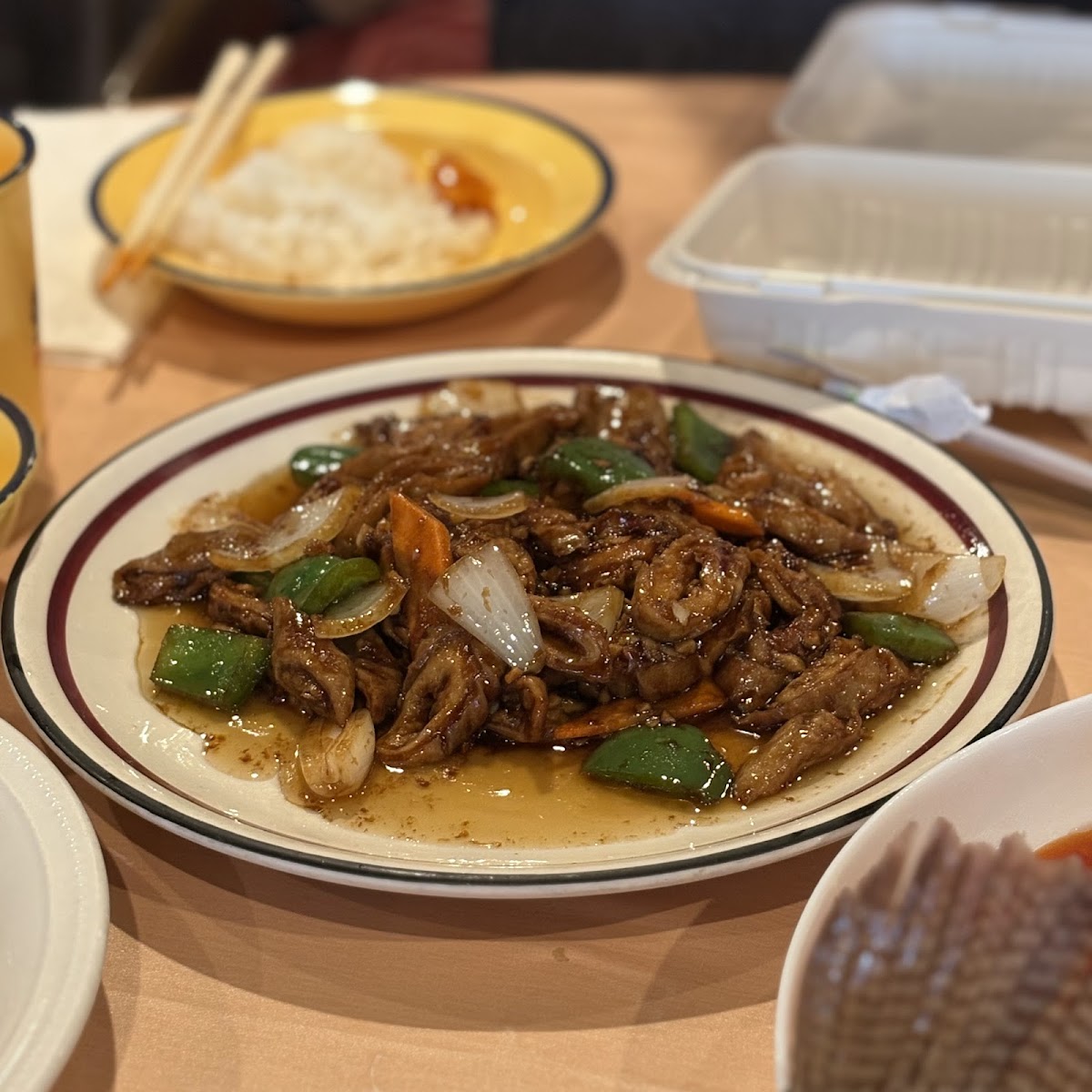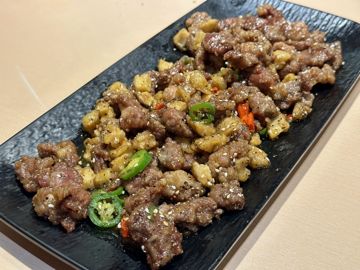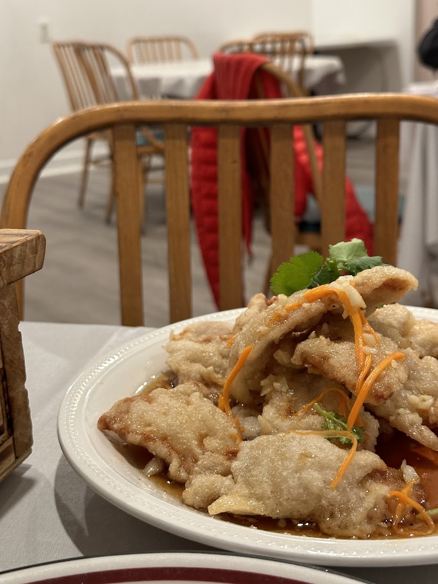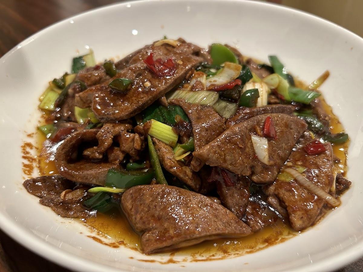 Don’t come here for general tso and fried egg roll. Come here for northern Chinese food! The 4 dishes we had were very good, I didn’t come home thirsty! Kidney and bean sprout on hot rocks was interesting, the rock definitely kept the dish hot! The flavors are nice with a touch of Szechuan peppercorn and tender kidneys. Braised elbow is their signature dish, very nice marinate and soft elbows. Fried pork in sweet and sour sauce, highlight of the night! Perfectly crisped and the sauce was so good, so far the best in town! Fried eggplant in bean sauce, lightly fried and tossed in a black bean sauce.