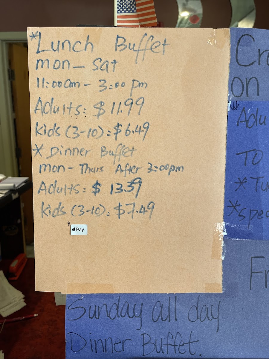 Egg rolls, beef sticks, fried wontons, fried shrimp, and BBQ spare ribs. Typically includes a variety of other appetizers such as chicken wings and crab rangoon.