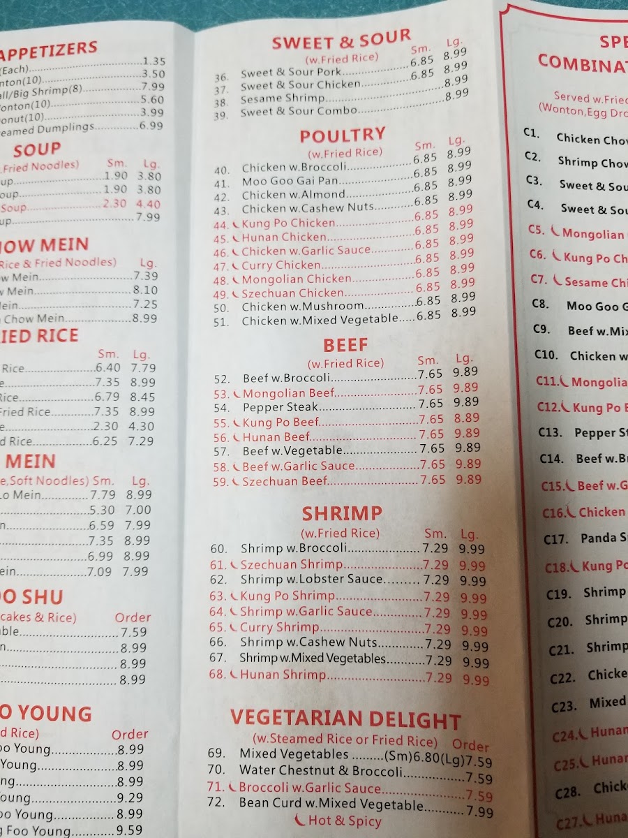 Chicken with mixed vegetables. Choice of wonton, egg drop, hot & sour soup, or extra egg roll.