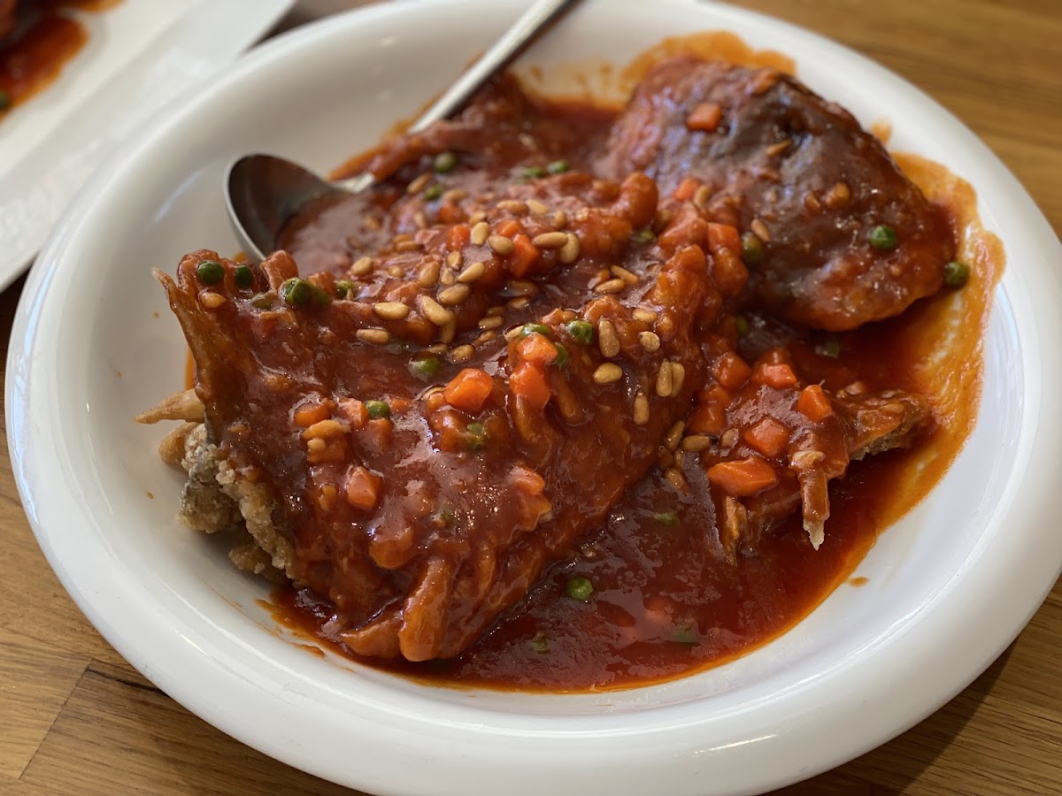 We came here mainly for sweet & sour mandarin fish 松鼠桂鱼, it's really great! The deep fried sweet & sour lotus root with shrimp 糖醋藕夹 and bake ube with mozzarella cheeses are also very delicious! Overall, it's very tasty. The service is also very quick. The only thing is most of the cuinsine are spicy, there isn't many choices if you're not a big fan of spicy food.
