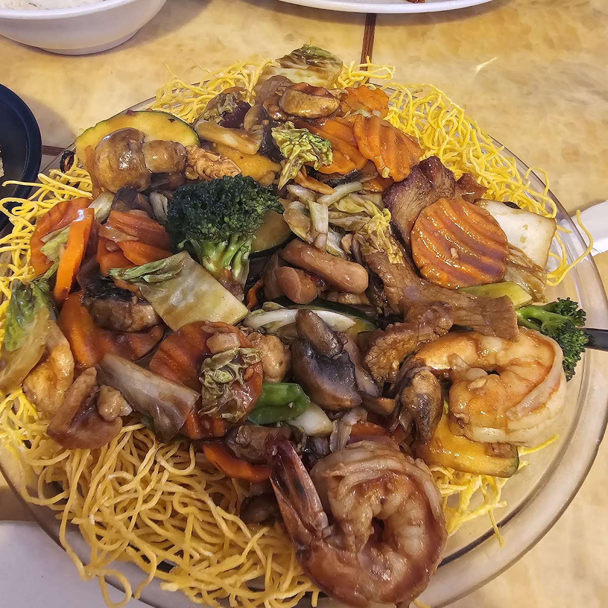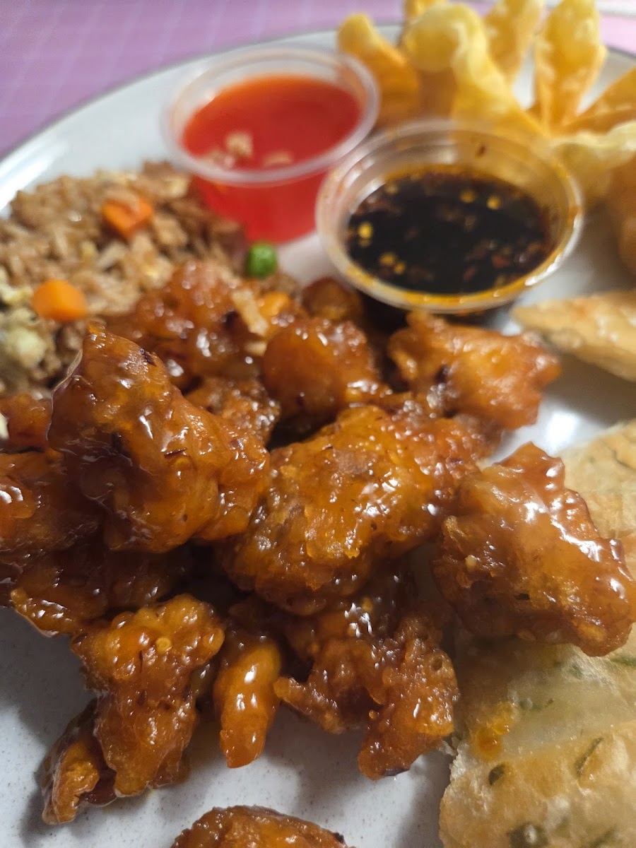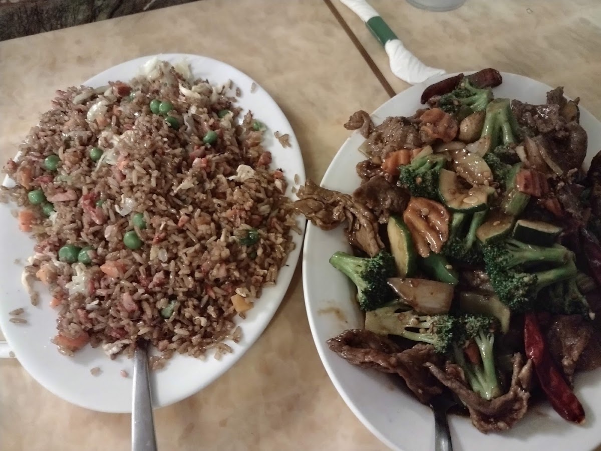 I am not the American Chinese Food expert, barely an amateur. This is only my second experience ever with Chinese food in El Paso. I speak only for my palate. I had the Sweet and Sour chicken and the Sesame chicken with fried rice. It didn't blow me away, it wasn't the best I have ever had, but until I find something better, I shall return because it was good. I do give 5 stars for portion size and the price. I am a big guy and it was more than enough! The décor is nothing extravagant but it seems to be clean. We had good prompt service for our visit on a Wednesday evening with a small crowd. I don't think they had fountain beverages since the Sprite we received was in a can. I recommend giving them a try. (Images have my order and Chow mien and beef entrée.)