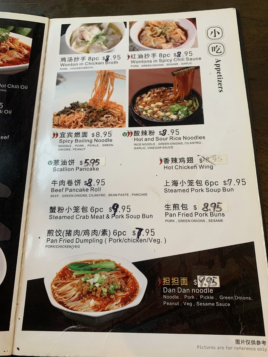 Delicate wontons filled with seasoned meat, topped with green onions and drizzled in a spicy chili sauce.