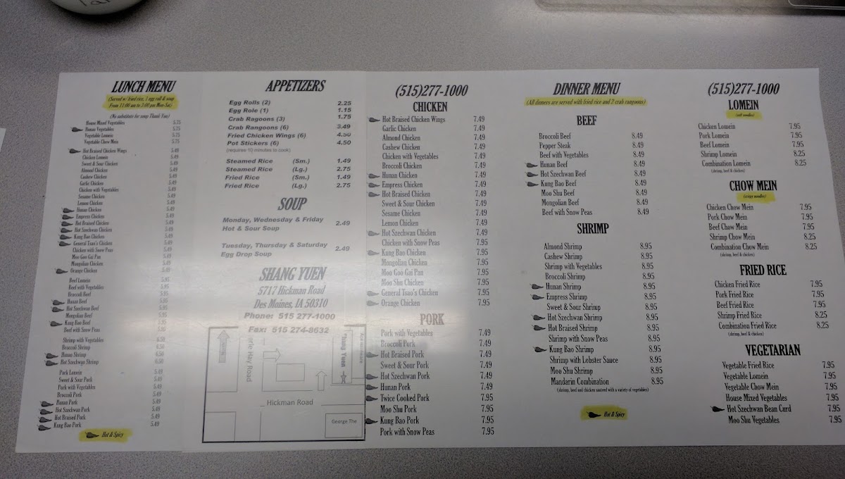 Lo Mein and Chow Mein - Dinner Menu