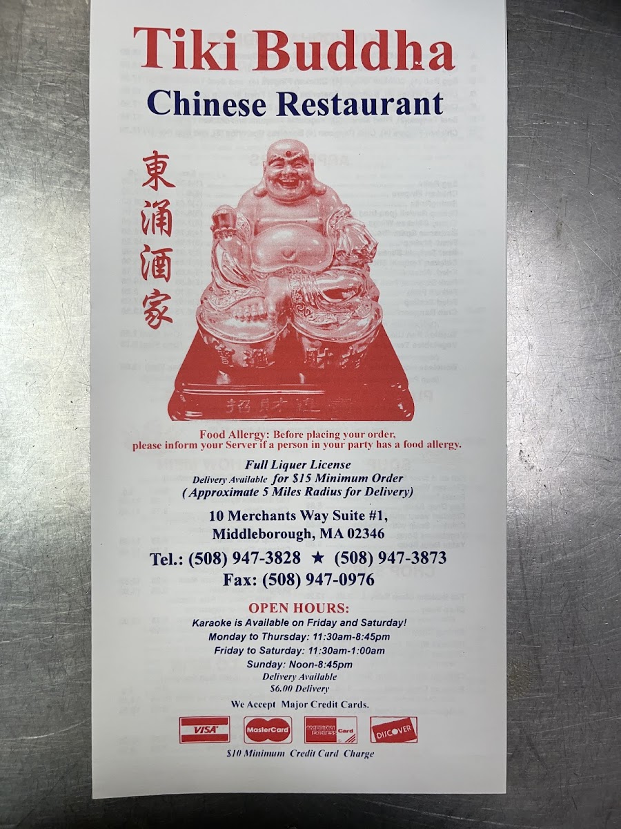 I left this place ready to jump on to this review and start SuperDoooshing a scathing review. It seemed like they were handing me my order before I was done placing it. I walked out thinking I just got some high priced reheated stale food. This was NOT the case! My family is super picky about Chinese Food (wanting the Americanized version of the classic dishes served in countless joints in and around Boston). Every other place down here is terrible. There’s one around the corner… Never Again. But Tiki Buddha seems to be on point. The rangoons were crispy and creamy. Lobster Sauce was acceptable and tasted good. Pork Fried Rice Was DARK and good. Egg Roll was decent. Lo mein was quite good. That was all we ordered this time, but we’ll be back. It’s the only Chinese Food I’ve found in at 30 mile radius that I’ll revisit. (Prices are a bit high, and charges for substitutions are infuriating when they offer combos with NO options). All in all. Happy with my birthday dinner.