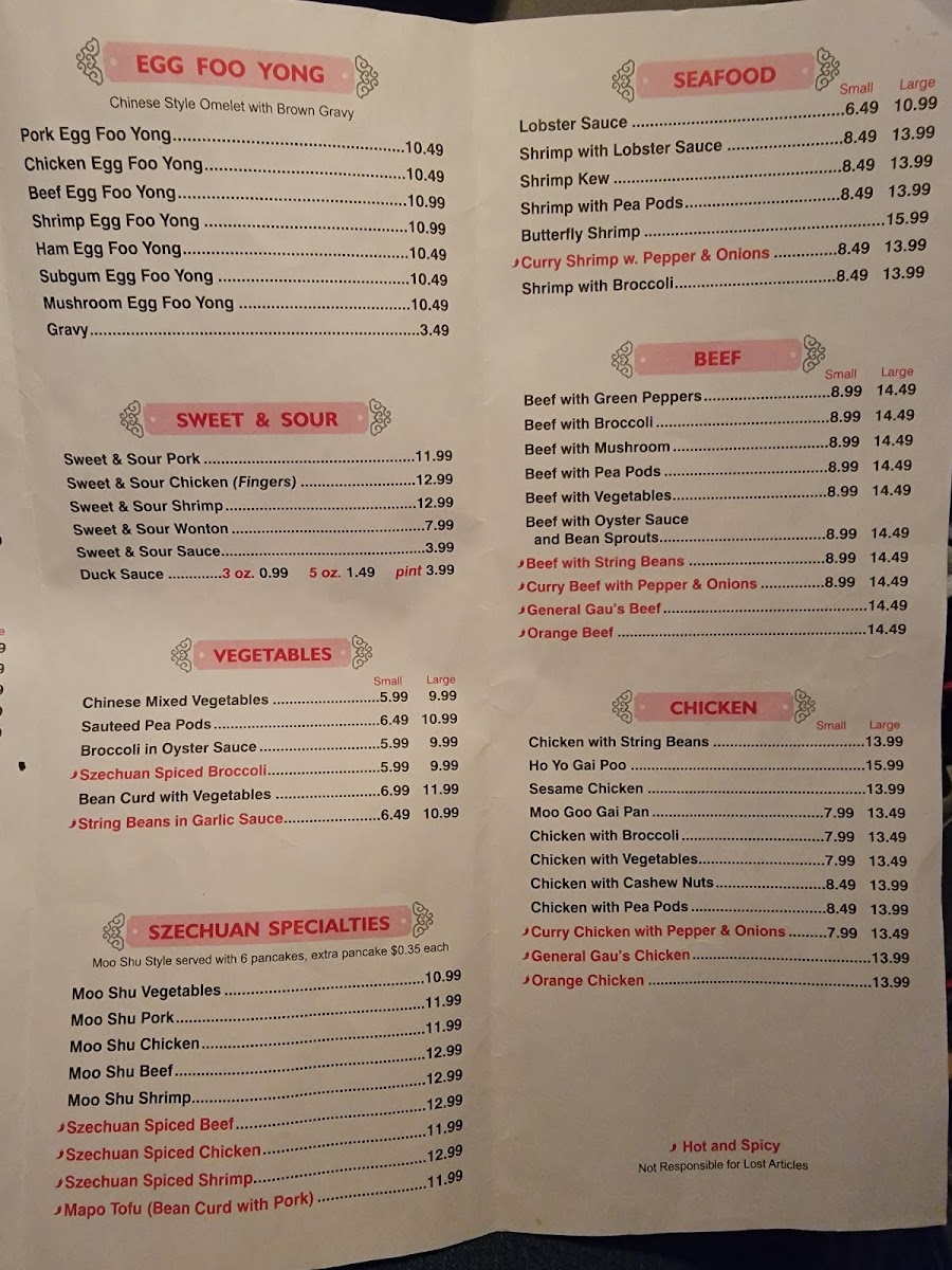 Chunks of chicken white meat,mushrooms,pea pods,water chestnuts,and bamboo shoots.Cooked with our own light hot & spicy sauce.