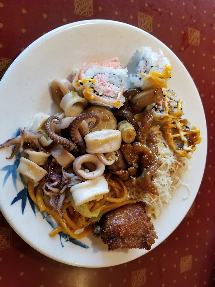 Friendly service. Nice selection of food. There is something for everyone. I tried a little of everything. I really like their California rolls. The rice in it are not dry and has the right amount of stickiness. Highly recommended this place.