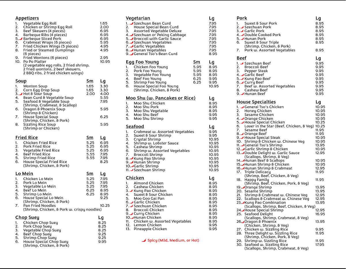 szechuan beef, moo goo gai pan, shrimp with lobster sauce, general tso's chicken, and lover in the star