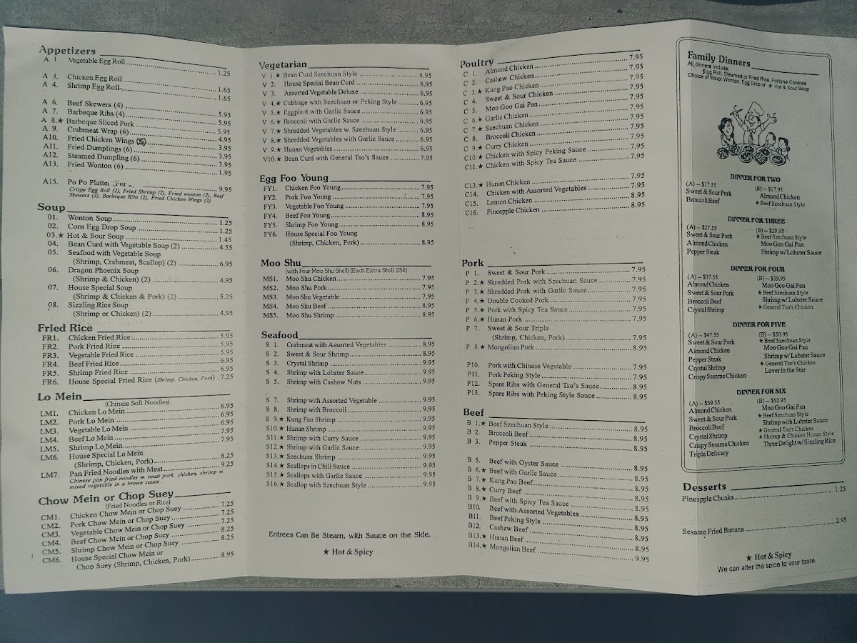 Family Dinners (include egg rolls, rice, and choice of soup)