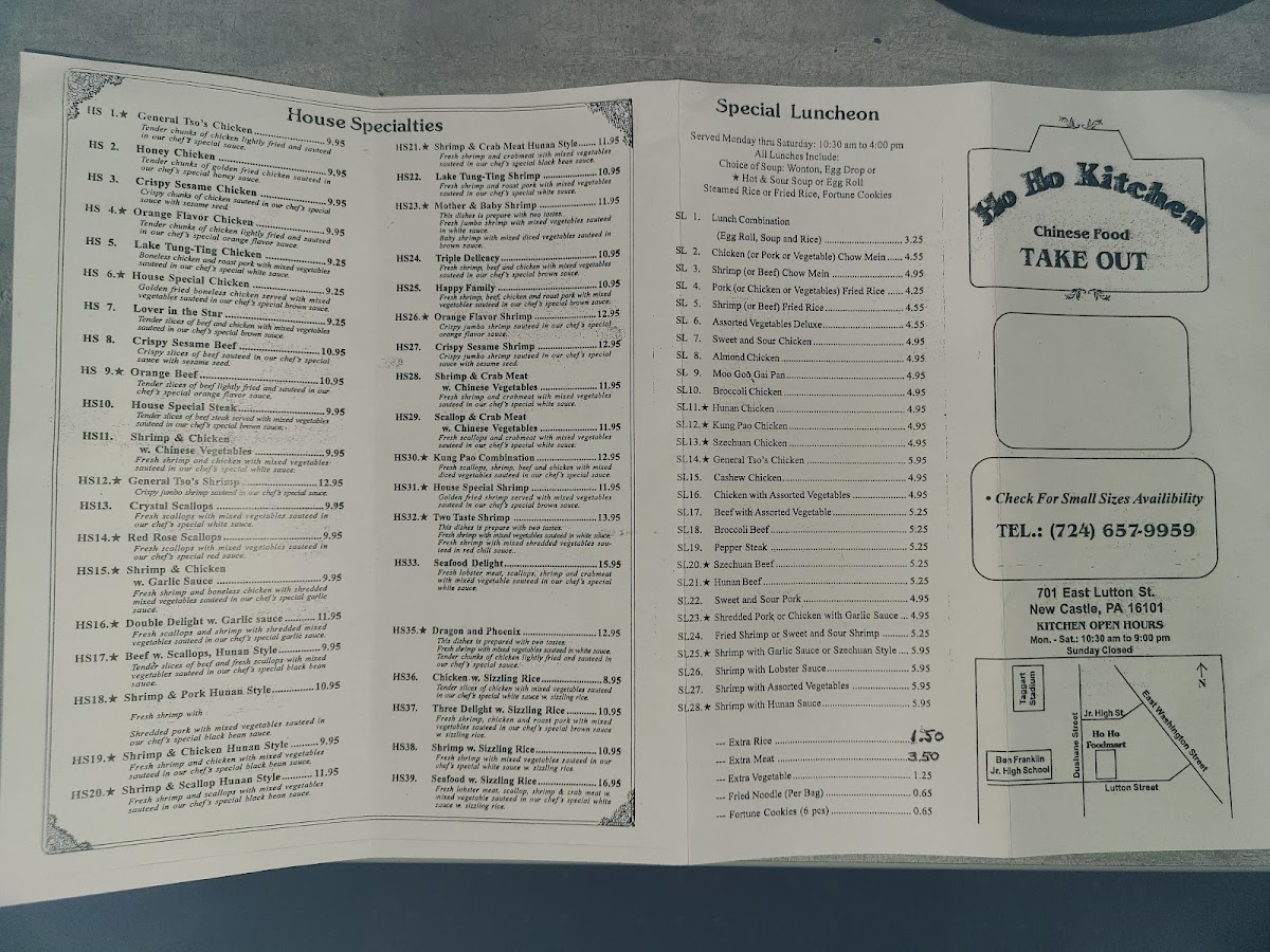 moo goo gai pan, szechuan beef, shrimp with lobster sauce, general tso's chicken, shrimp and chicken Hunan style, and three delight with sizzling rice