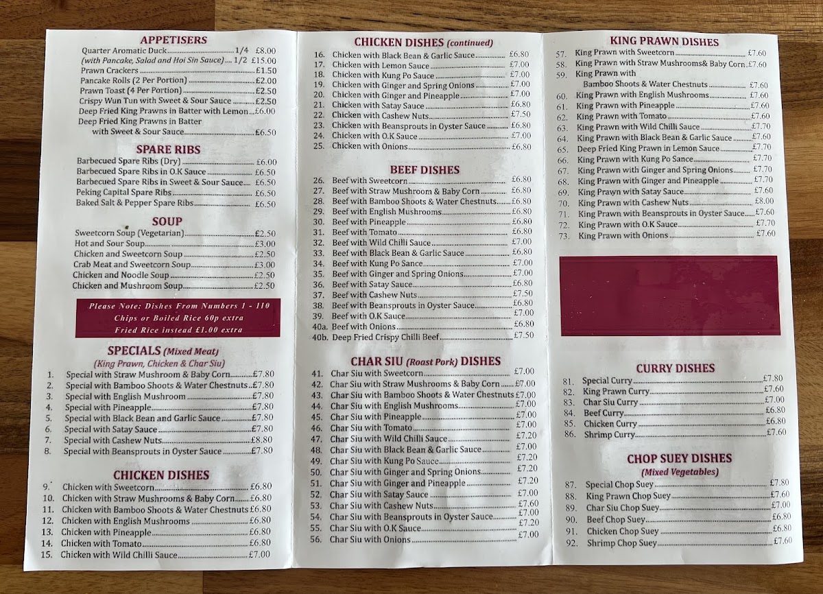 Good food for the price, kitchen looks extremely clean as you can see straight into it when you go into order/ collect. Food has never disappointed, but add more pineapple to the sweet and sour& less onions! As I’ve noticed I only get 1/2 peices of pineapple in each dish.