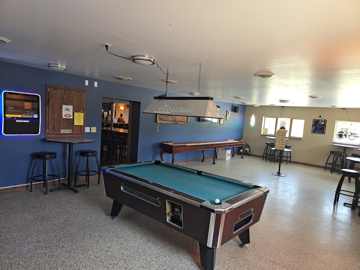 Plenty of bar games, darts, pool, shuffleboard, giant Jenga, jukebox. Great liquor selection and seltzer and craft beers. No smoking, but a lovely patio is available with great views of Willow Slough and rural beaverville Illinois. A quirky Sasquatch statue graces the front, great for photos ops. Bartenders are friendly and capable, and they have bingo on Wednesday nights!