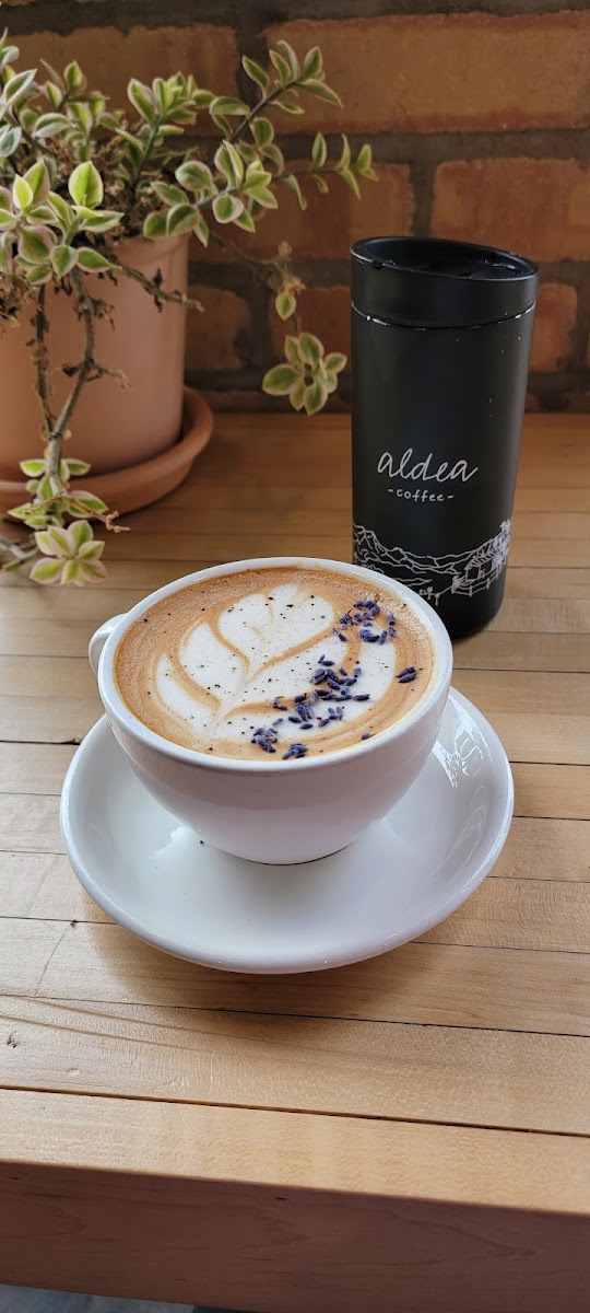 Aldea Coffee - Muskegon is a Coffee Shop at 794 Pine St unit a, Muskegon, MI 49442. This venue has 445 user reviews, and its menu includes Hot Chocolate, Vanilla Latte, Apple Cinnamon Muffin, Matcha Latte, and Sugar Plum. Customers can expect a cozy spot offering a range of coffee and sweet treats.