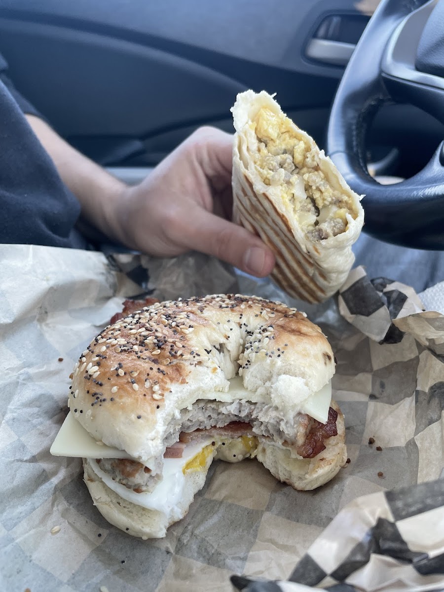 The americano and hot chocolate were great! I’d definitely go back for coffee! I was expecting a burrito with more egg based on the pictures in other reviews. The burrito and Bad Burro sandwich were ok. It’s your typical fast food quality.