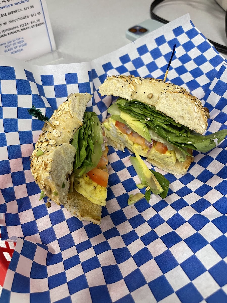 Veggie egg bagel, excellent, eggs fluffy and bagel, soft and perfect with sandwich. It was worth getting off the I-5 to Hwy 33 to find this little gem! Ambiance & music definitely a "plus." See you next time I travel through Patterson City
