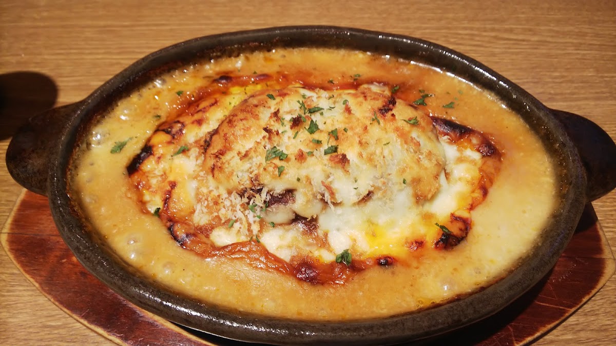 ◎パングラタン どこにでもは置いてない パングラタン!! 一斤近い丸ごと食パンをくり抜き 濃厚すぎないクリームシチューのようなホワイトソースが入っていて 表面はチーズでこんがり焼いてあります! ホワイトソースには、きのこ、玉ねぎ、ベーコン、ブロッコリーなど具沢山! 美味しいに決まってるこのお料理! 期待を裏切らない むしろ上回る美味しさでした! ◎ベーコンエッグサンドイッチ ツレのを一切れいただきました! 具材も豪華で 冷たくないサンドイッチは 出来立てならではで美味しい! ◎プリンのチョコレートパフェ+チーズケーキトッピング プリンも食べたい チーズケーキも食べたい。 そんな食いしん坊さんには トッピングがおすすめ! この要領だとパフェの種類は100を超えますね!(笑) ◎キャラメルシュークリームパフェ プチシューが乗ってました! ◆あとがき カフェ、喫茶店、洋食レストランの いいとこ取りをしたような 明るいお店! 閉店時間までとても賑わってました! モバイルオーダーです!