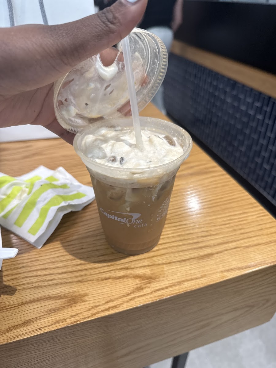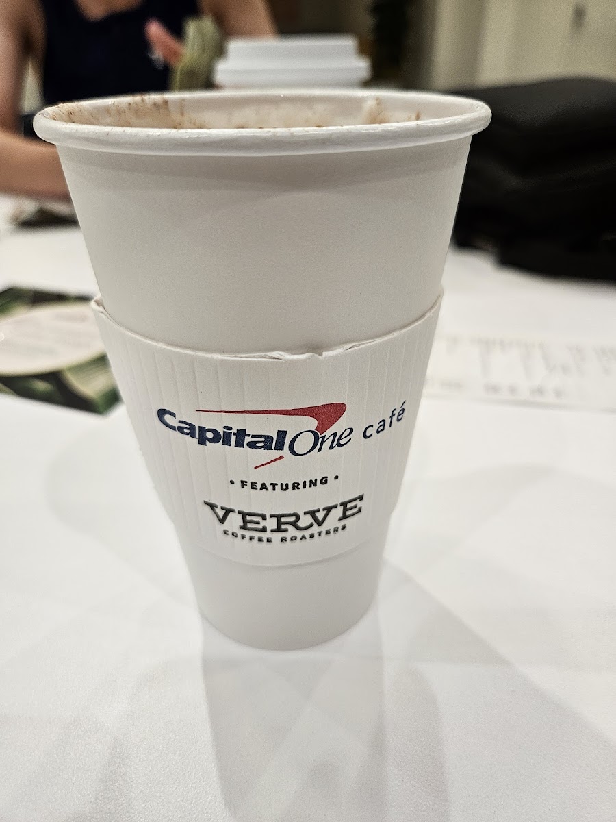 It’s a great cafe for capital one card holders. I came here because my credit card gave me a voucher for a free coffee from capital one cafe so I ordered a lavender latte and a ham and cheese crossaint sandwich. The ham and cheese tasted weird with the orange jelly they put in there and the latte wasn’t bad at all, I should’ve ordered a larger size because I finished it in like 5 minutes or less. I love how this cafe gives out free luggage tags which is a kind gesture and the customer service is great.