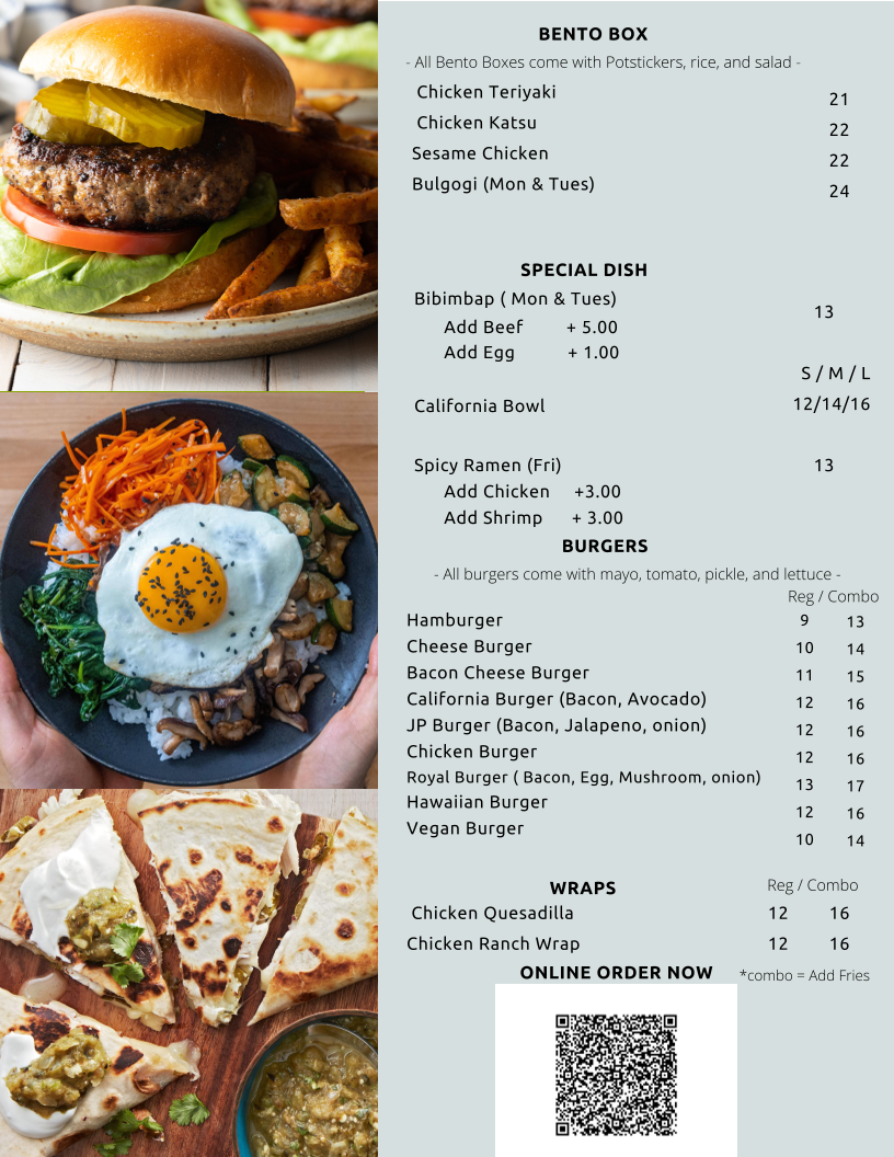 (Mon & Tues) All Bento Boxes come with Potstickers, rice, and salad